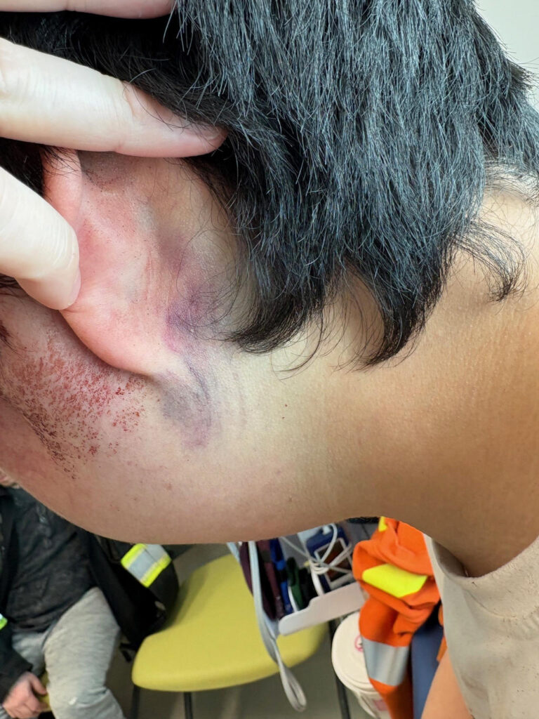 4.) Testung des Hörvermögens (+): Dies wird mit vorsichtigem Reiben von Zeigefinger und Daumen vor dem Gehörgang des Patienten getestet. Ein neuer Hörverlust oder Tinnitus kann ein Hinweis auf eine zentrale Genese (Stroke, TIA) oder bei repetetivem Auftreten mit Schwindelepisoden auf einen M. Menière hindeuten. Da dies präklinisch schwierig zu testen ist, ist hier bei einen neu aufgetretenen Hörverlust immer, bis zum Beweis des Gegenteils von einer zentralen Genese auszugehen. In Studien zeigte sich der neue Hörverlust als Hinweis auf eine zentrale Genese des Schwindels mit einer Sensitivität von 4.3% (95% CI 1.1%–15.5%)und einer Spezifität von 95.0% (95% CI 85.2%–98.4%).[34] Ein neu aufgetretener einseitiger Hörverlust tritt vor allem bei Patienten mit einem Verschluss der A. Cerebelli anterior inferior auf. Dies sind meist die Patienten die gleichzeitig einen Spontannystagm,us aufweisen und als peripherer Schwindel nach klassischem HINTS Test gewertet werden könnten.[18]